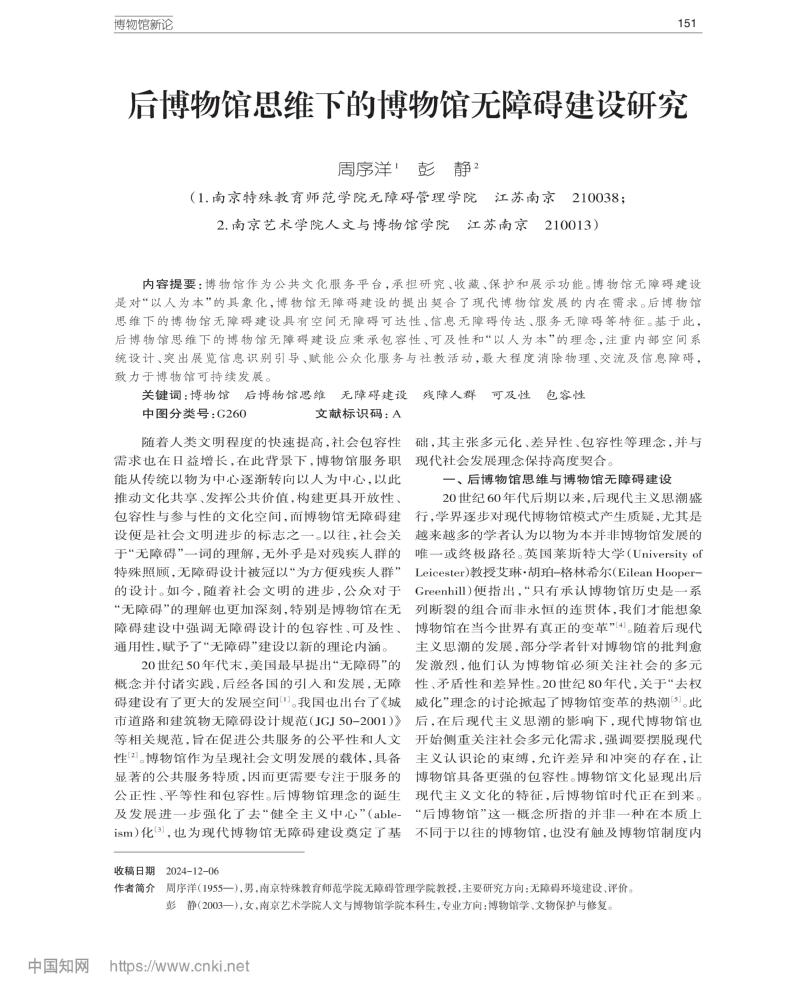 本文著录格式:周序洋,彭静.后博物馆思维下的博物馆无障碍建设研究[J].东南文化,2025,(03):151-155.