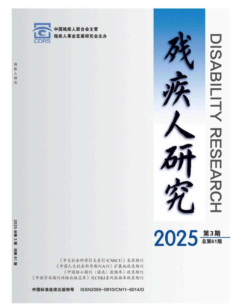 《残疾人研究》创刊于2011年,双月刊,是由中国残疾人联合会主管、残疾人事业发展研究会主办的残疾人研究领域的全国性学术期刊,为《中文社会科学引文索引》(CSSCI)2023-2024来源期刊。《残疾人研究》主要服务于残疾人、残疾人工作者及社会各界人士,主要栏目有指导思想、理论研究、政策探讨、社会调查、经验介绍等。