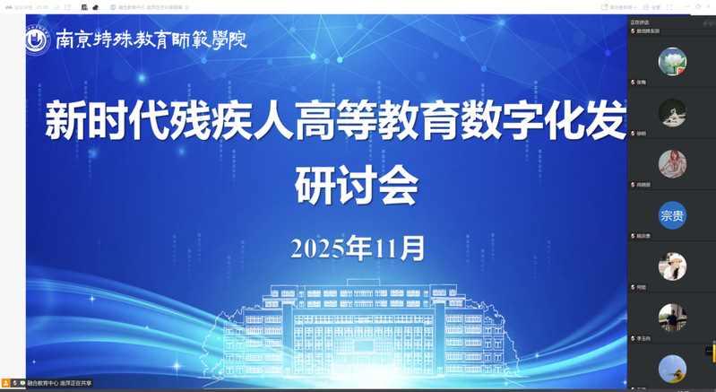 为促进残疾人高等教育数字化发展,搭建校际交流平台,11 月 14 日,特殊教育数字化研究中心在线上成功举办新时代残疾人高等教育数字化发展研讨会。本次会议特邀北京联合大学、长春大学、重庆师范大学等 9 所高校该领域专家学者参会研讨,由数字化研究中心负责人主持。