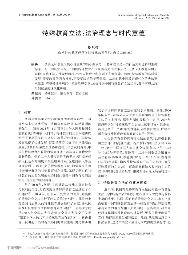 本文著录格式:杨克瑞.特殊教育立法:法治理念与时代意蕴[J].中国特殊教育,2025,(03):3-9.