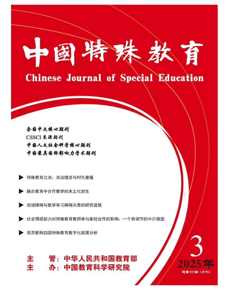 《中国特殊教育》杂志1994年创刊,现为月刊,是由中华人民共和国教育部主管、中国教育科学研究院主办、中国教育科学研究院心理与特殊教育研究所编辑出版的我国特殊教育领域核心学术期刊,是《中文社会科学引文索引》(CSSCI)来源期刊,全国中文核心期刊,中国学术期刊网(CNKI)来源期刊,中国人文社会科学核心期刊(AMI)。