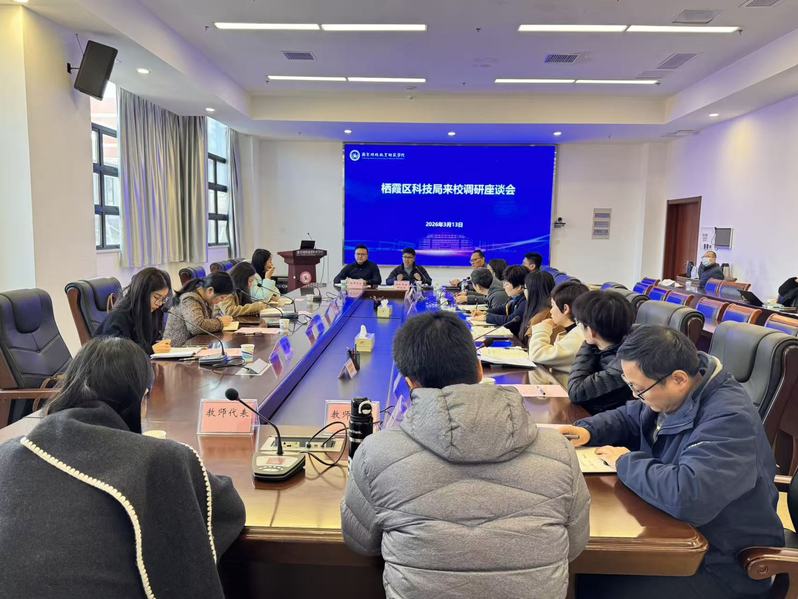 2026年3月13日,栖霞区科技局、“霞科行”区技术转移市场一行来我校调研科技成果转化情况。调研座谈会在实验实训大楼201会议室召开。学校党委常委、副校长许巧仙出席会议,科研处负责人主持会议。特殊教育学院、康复与体育学院、管理学院、人工智能学院、数学科学学院以及音乐与舞蹈学院等单位相关负责人以及部分教师代表参加了座谈会。